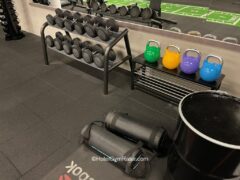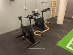 In terms of cardio equipment, there’re two treadmills, a cross-trainer, a rowing machine and two spinning bikes.