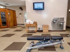 As for cardio machines there’re two treadmills, two stationary bikes and three cross-trainers.