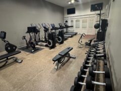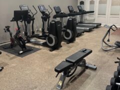 In terms of cardio equipment, there’re three treadmills, two cross-trainers, a stationary bike and a Peloton bike.