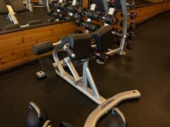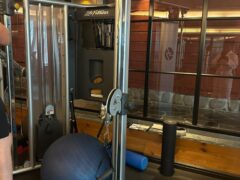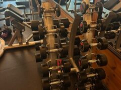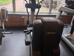 As for cardio equipment, there’s a stationary bike, a rowing machine, a cross-trainer and a treadmill.