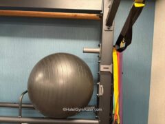 Other items in the hotel gym include a TRX suspension trainer, two Bosu balls, an exercise ball, resistance bands, a plyometric box, an yoga mat, three foam rollers, and five general exercise mats.