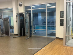 There’s also a dual cable machine, a seated leg press machine, a leg extension machine and a separate cable machine allowing for lat pull-downs, seated rows, etc.