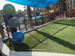 Accessories are in an outside workout space.