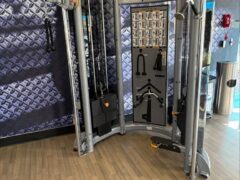 There’s also a dual cable machine with a solid selection of handles.