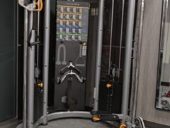 There’s also a dual cable machine with a fair selection of handles.