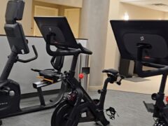Cardio equipment includes two cross-trainers, three treadmills, a stationary bike and two Peloton bikes.
