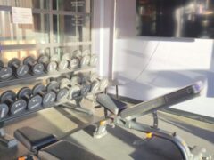 Dumbbells go up to 44 lbs/20 kgs and there’re two adjustable benches.