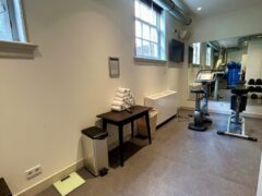 Cardio equipment consists of a stationary bike and a cross-trainer.
